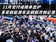 11月交付成绩单出炉 多家新能源车企刷新月销纪录