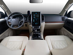 丰田兰德酷路泽又名陆地巡洋舰. 配置采用4.6升V8引擎自吸发动机,与发动机匹配的是手自一体6速变速器。最大功率234KW/5600rpm,最大扭矩460NM/3400rpm. 兰德酷路泽留给我的印象,一直是皮实耐用、越野性强、不挑油等 在家里人的强烈安利之下马上就去买了,没等换代!没有苦等下一代车型!因为家里祖传都是用这款,简直就是狂热粉。用了一段时间,感觉后排五座还是比较局促,后来自己仔细想了想,不如不要中间这个座位,因为在自主创业的原因,更多需要商务谈判,中间座椅用到的机会相当小。所以为了让他更具专业性以及更符合陆巡霸气外观的个性,就直接改成四座带各种功能。这个中排扶手造型,无论是造型设计还是其功能性都让这辆丰田陆巡瞬间高大上了有没有,因此内饰因此被分为左右两个空间,更加显档次感,包含有储物功能,冷藏功能,手机充电功能,电子触屏控制功能,座椅多向调节,空气净化,多功能按摩等这次将原车座椅中排三座的布局形式彻底革新,改成后排双座,更显商业性使得乘坐更加体面和气派。