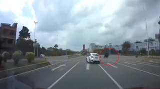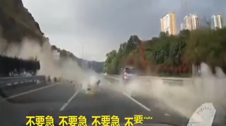 新手女司机高速碰到散落货物,听副驾驶老师傅稳住车