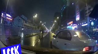 黑车躲避障碍物连续变动,新手白车司机打方向撞车