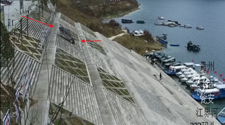 监控实拍粗心司机未拉手刹,溜车冲入河里面