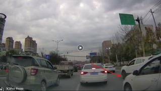 记录仪实拍红绿灯路口女司机随意变道刮蹭视频车