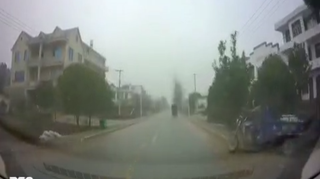记录仪实拍三轮车不顾直行车辆驶入,差点撞到