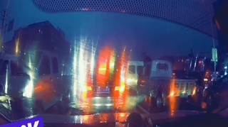 行车记录仪实拍新手小货车不注意撞上隔离护栏