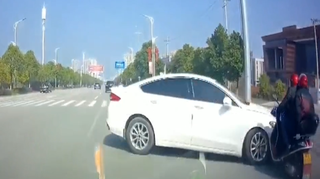 记录仪实拍白色小车转弯不让直行电动车,负事故全责