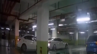 新手司机地下车库停车,油门当刹车原地转圈撞上柱子