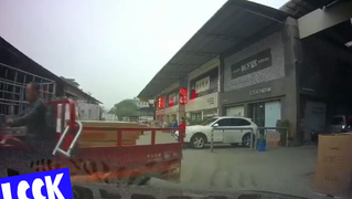 行车记录仪实拍三轮车司机不看车距刮蹭小车逃逸