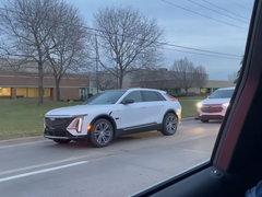 【凯迪拉克Lyriq量产型上路实拍】2023款凯迪拉克Lyriq量产型,图2-4中的这辆新车看起来有些奇怪,整车白色,不过尾门却是红色的。从视频动态来看,凯迪拉克Lyriq整体感觉不错,尺寸够大,气场很足,前脸设计带感,尾部设计略显用力过猛。根据此前官方预售信息,之前预订的凯迪拉克Lyriq订单将在今年年中交付。
