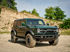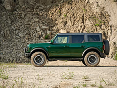 【福特Bronco新车漆发布】福特日前发布了Bronco越野车的全新车漆,官方称之为Eruption Green(狂热绿),这是一种类似于墨绿色的颜色,灵感来源于初代福特Bronco越野车的野鸭绿车漆。福特Bronco目前有反物质蓝、闪电蓝和快速红等几种金属漆供用户选择,此次新增的狂热绿和辣椒红车漆将于年底前正式推出。