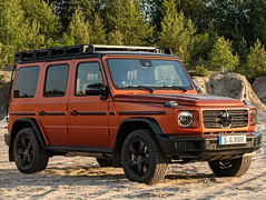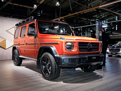 【2022款奔驰G级越野车亮相】2021德国国际汽车及智慧出行博览会日前在慕尼黑拉开大幕,在以电动车为主的展品中,梅赛德斯-奔驰展馆的2022款奔驰G级越野车格外显眼。2022款奔驰G级越野车相较现款车型主要变化是新增了Professional Line外观套件,主要包括大灯护罩、前后挡泥板、越野胎、五幅式18英寸轮毂、备胎架、车顶架等等。除了上述套件外,消费者还可以自主选配奔驰推出的其他专业改装件。在内饰方面,2022款奔驰G级越野车主要变化是新增了64色氛围灯和前后侧窗隐私玻璃等。