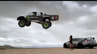 皮卡车时速每小时200公里,与飞机PK,场面震撼,如同电影大片