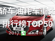 小熊油耗2017油耗排行榜——轿车油耗车重比TOP50