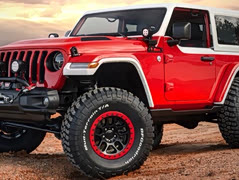 这辆原产改装牧马人的灵感来自经典的 1966 年款Jeepster, 顶棚和轮眉采用了非常有时代感的奶白色喷图,前保险杠上和发动机舱盖两侧追加的LED射灯极为小巧,车尾外挂的三个油桶极为风骚,非常期待它会量产,尽管我不太可能买它