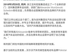 吉利集团赛车运动部成立,并由原Polestar运动部门负责人Alexander担任总监,Polestar将不再参加2018年的WTCC,其赛车项目并入吉利集团赛车运动部。