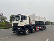 重汽汕德卡前四后八勾臂垃圾车,大型垃圾站转运车
