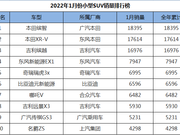 2022年1月份小型SUV销量排行,本田包揽冠亚军,但国产车更吃香