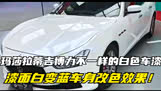 玛莎拉蒂吉博力不一样的白色车漆,漆面白变蓝车身改色效果!
