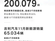 吉利汽车11月销量进入20万级俱乐部,连续10个月同环比双增长