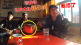 顶着狂风俩小伙在山顶喝一杯,真的太危险了,不敢站起来双腿发抖