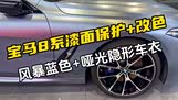 车艺尚宝马8系装贴两层汽车膜!风暴蓝车漆改色膜和哑光隐形车衣