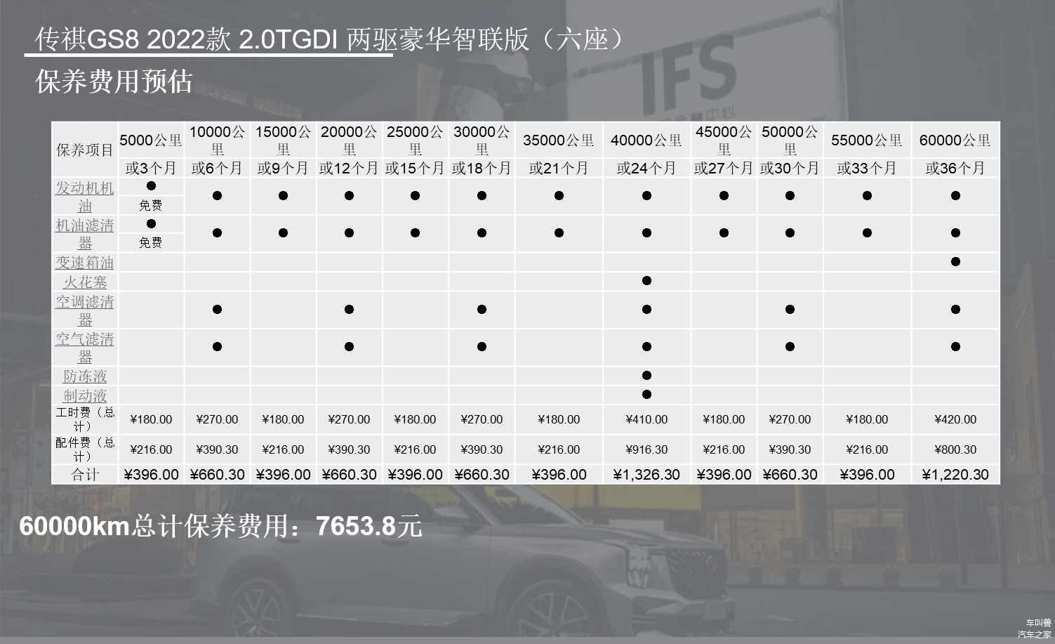 我们大致计算了一下,60000km的总保养费用约为7653.8元,按照一年20000公里计算,每年保养花费约等于2521元,倒也不贵。