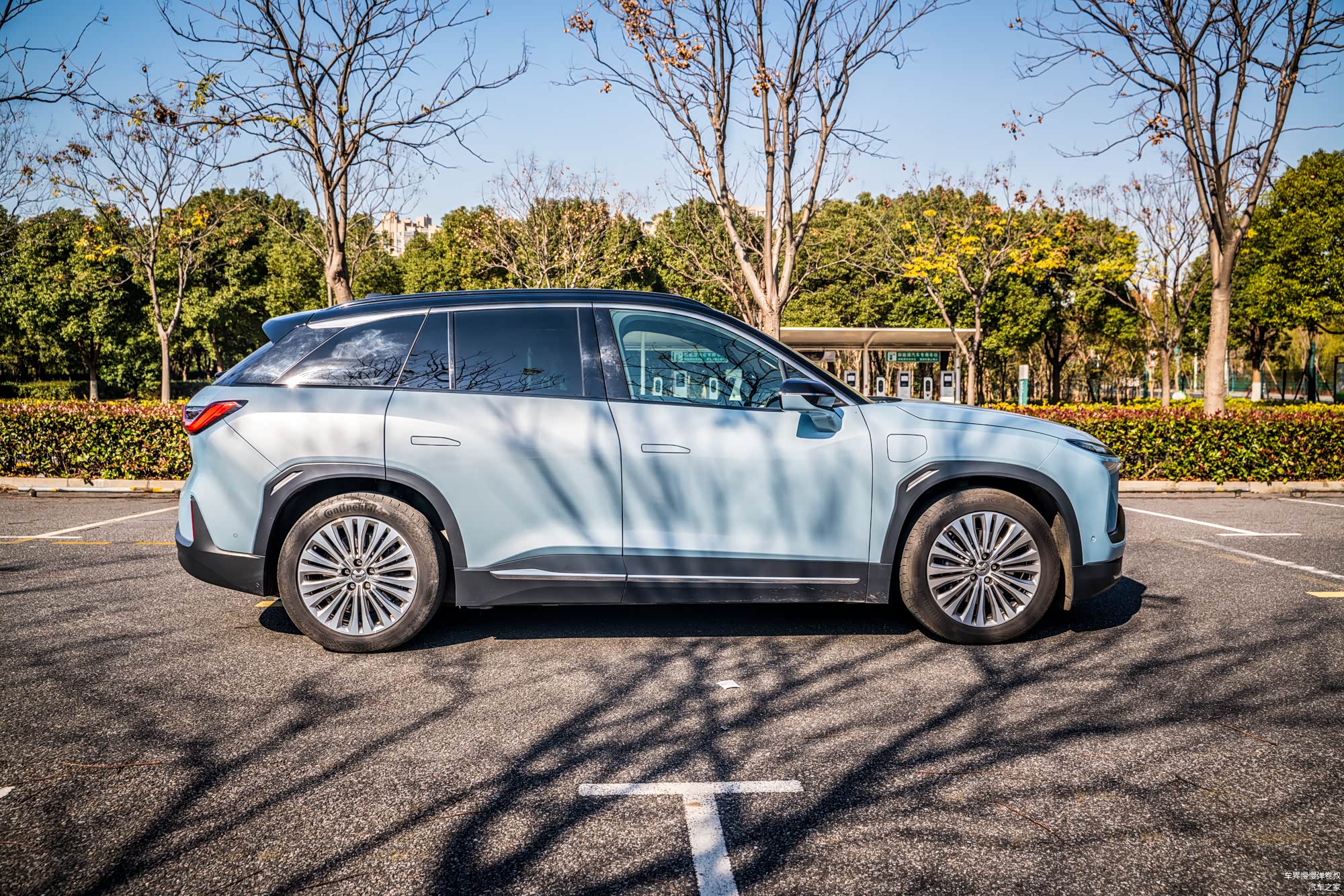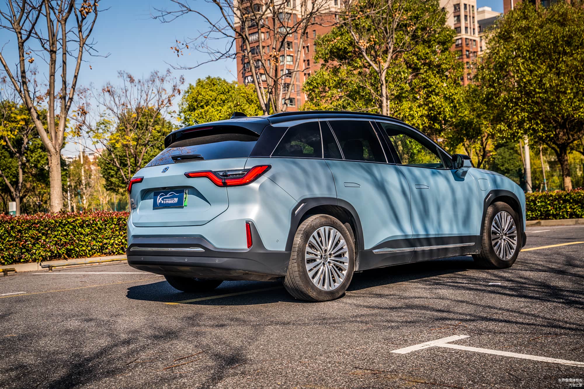 腰身部分则是当下非常流行的扁平化设计,除了隐藏式门把手以外,悬浮式车顶、大倾角D柱和溜背式尾门构建出了一个立体感极强的画面,流线感不错,给人一种充满运动的姿态。