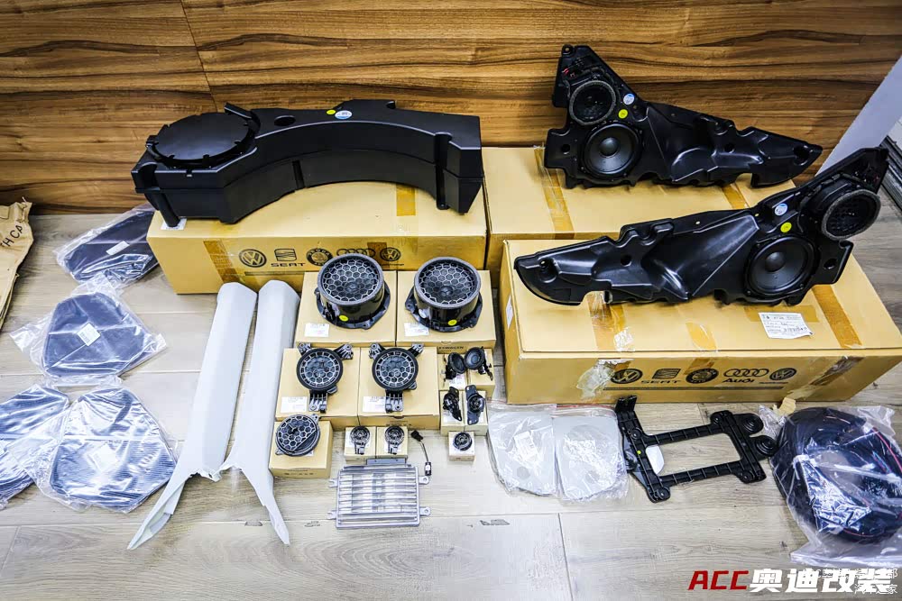 奥迪Q8 B&O音响+圣科内饰保护膜奥迪Q8升级B&O音响 原车最该升级的就是原车音响了——来自北京【Acc奥迪】改装推荐