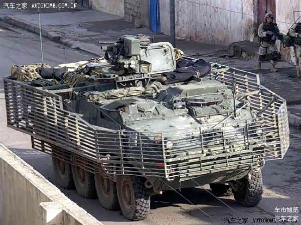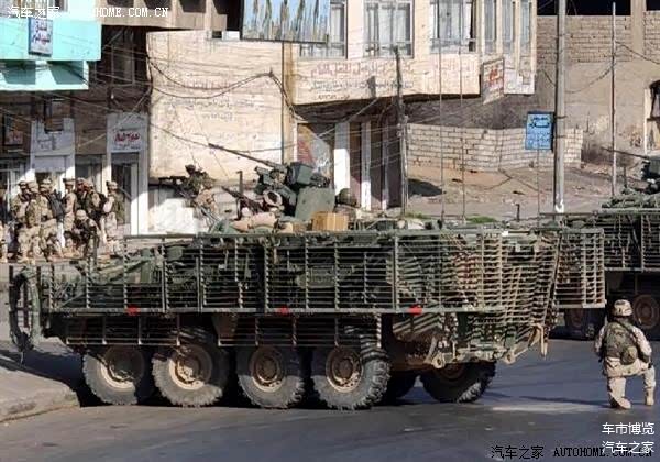 以下图片是在伊拉克战场上的斯特赖克轮式装甲车: