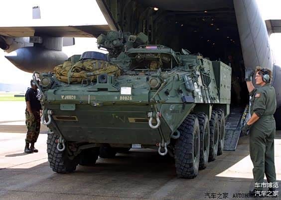 斯特赖克轮式装甲车可利用大型运输机运送到全世界任何一个战场作战。