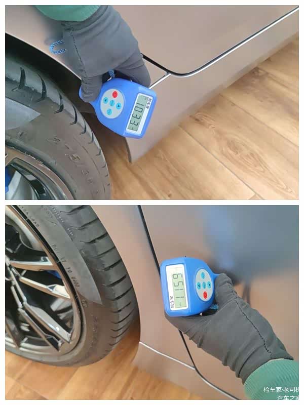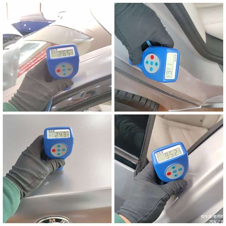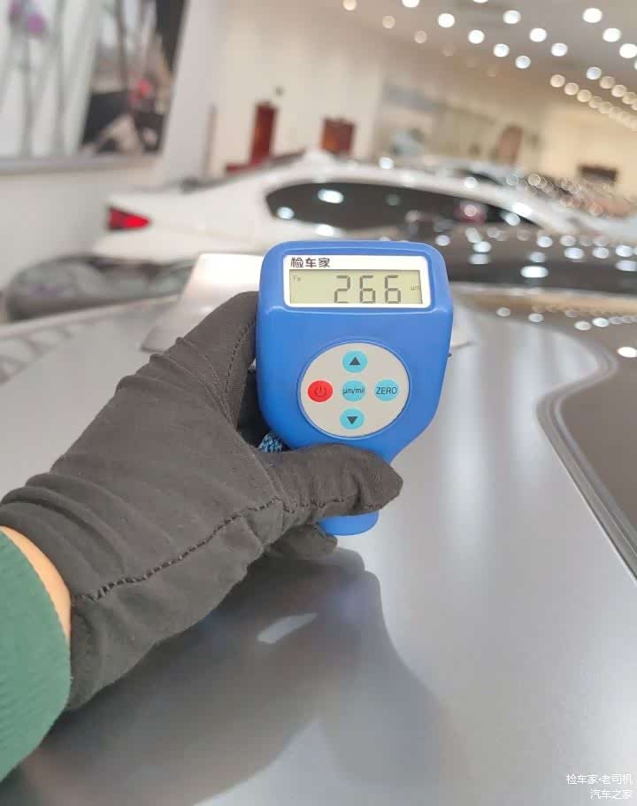 全车贴了改色膜,对车漆判定还是有一点影响。只能通过漆膜仪测量车顶、A柱、C柱等此类不容易喷漆修复的位置,然后估算出漆面厚度的平均值用作参考,超过平均值或者低于平均值过多的漆面就是有问题的。当然尽量用肉眼去观察各种细节,是否有飞漆流漆等迹象。