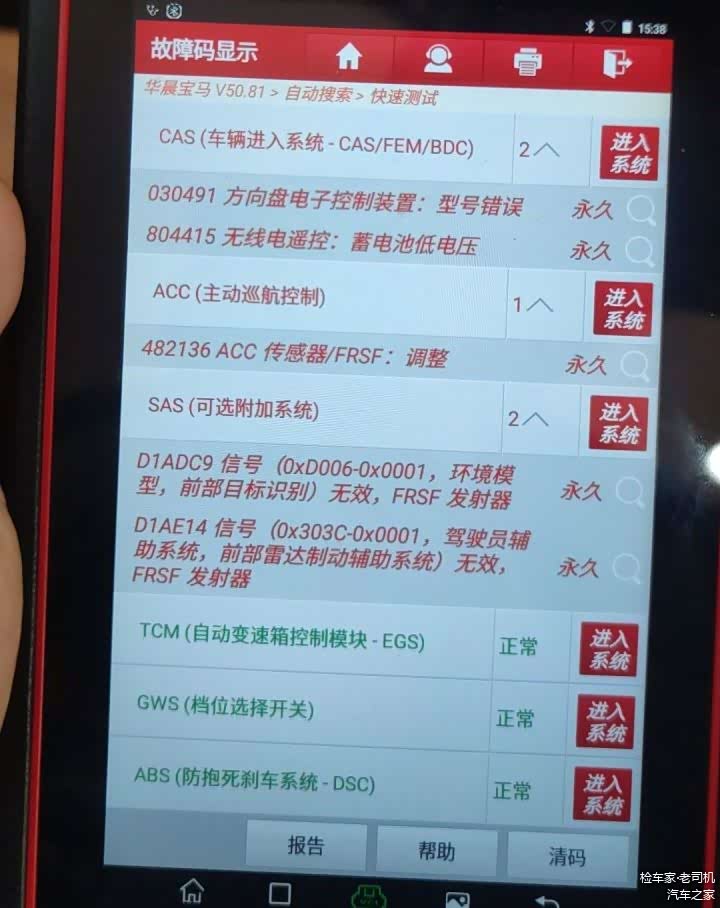 拿出OBD电脑检测全车电控系统,发现有几个方向盘故障,应该是改装导致的,这个得拆开检查一下。或者重新做个编码。