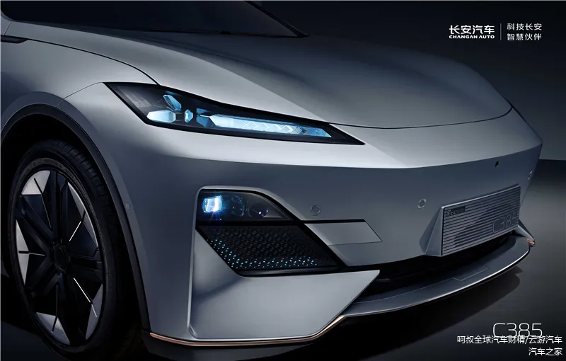 长安C385的整体设计风格采用了类似燃油版UNI-V的设计风格,不同点在于,由于是纯电车型,C385的车头取消了进气格栅,采用了全封闭设计。C385的车身数据为:4800*1880*1480mm,轴距2880mm。