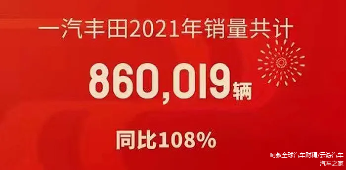 一汽丰田也率先发布了销量,一汽丰田2021年累计销量860,019辆,同比增长8%。其中,SUV家族累计销量283,523辆,双擎家族累计销量201,597辆。值得一提的是,2021全年TNGA车型销量占比89.04%。