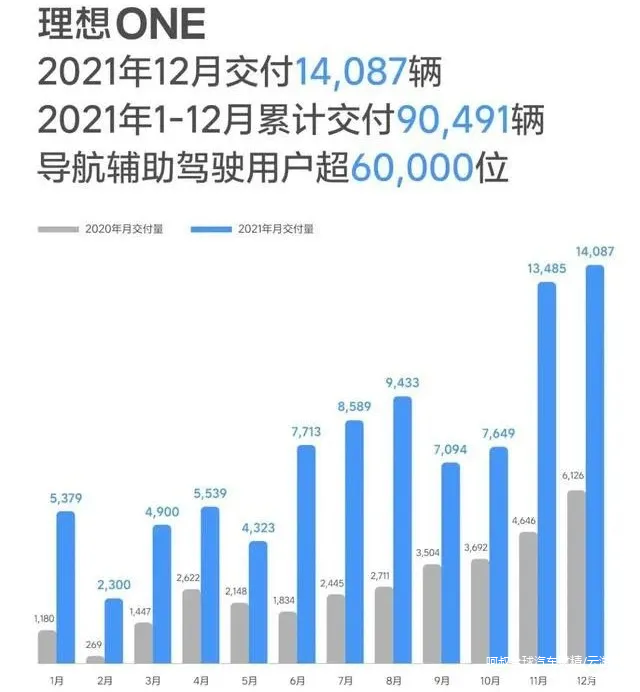 理想汽车2021年累计交付量达到了90491辆,同比增长了177.4%,另外,历史累计交付量也超过了12万辆。虽不敌小鹏汽车,但仅凭理想ONE一款车型就能实现超1.4万辆交付成绩,这个成绩在国内新能源产品中已经算是不错的。