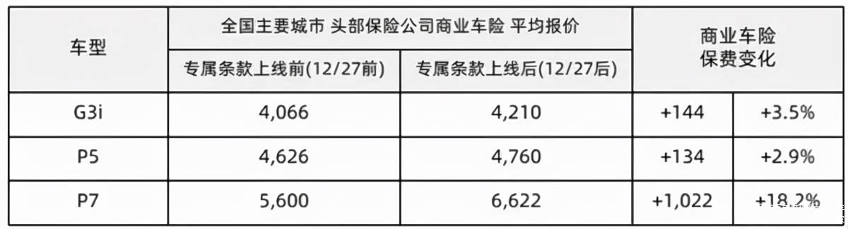 小鹏汽车则主动对外公布了全国各大主要城市的保费变化情况,全线车型平均涨幅2.9%~18.2%不等。