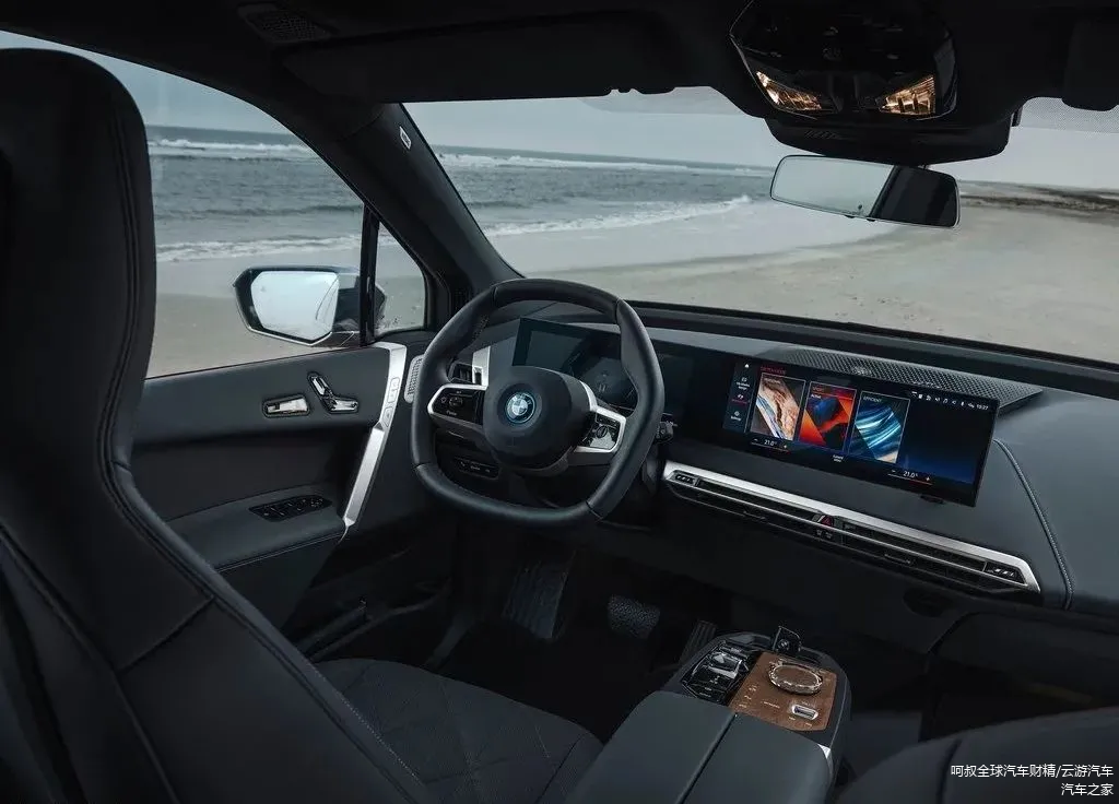 在内饰方面,宝马iX M60的全液晶仪表盘、多媒体触控屏采用了双联屏设计,内置了iDrive 8.0车机系统。新车配备了双辐式多功能方向盘,整体内饰设计更加简洁。