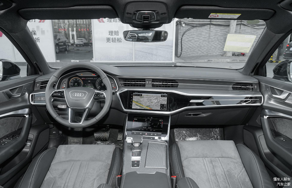 进入奥迪A6L PHEV车内,看上去比较有质感,车内运用大量皮质材料覆盖,真皮多功能方向盘握感不错,提供换挡拨片功能,而方向盘电动调节以及加热则需要用户选装。在方向盘正前方是一块彩色全液晶仪表屏,尺寸在12.3英寸,往右侧去看,中控区域是提供上下两块屏幕,上方屏幕尺寸在10.1英寸,下方屏幕尺寸在8.6英寸,上方是常规中控屏,支持车联网以及手机互联,下方则是一块辅助屏幕。