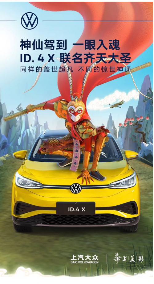 为了和用户有效沟通,如今,汽车品牌纷纷选择走下“神坛”,与年轻人平等对话。上汽大众的营销落点也正逐步从车型向用户转移,营销通道也从品牌单方面输出升级到与用户共融共创。在ID.家族的宣发期,ID.4 X与宝可梦等热门角色跨界联名,“萌翻”一众年轻消费者;牵手上海美术电影制片厂,联名齐天大圣打造"神仙"组合;还携手王者荣耀KPL官方职业联赛,打造“痛车”文化等等,玩转年轻人喜爱的二次元与三次元。