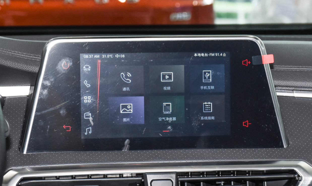 中控区域,新车最大的变化是将液晶仪表盘升级为7英寸,并且配有彩色行车电脑显示屏。中控屏只有畅游B版本配有8英寸触控液晶屏,支持蓝牙/车载电话、原厂手机互联/映射、语音识别控制等,功能不多,但是能够满足日常使用。