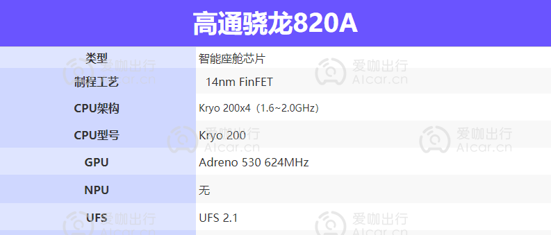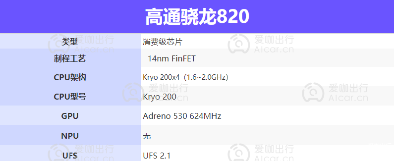 其实我们拉出骁龙820A和骁龙820的配置单可以发现,两款芯片的配置几乎完全一样,CPU同样采用了四颗64位Kryo处理器,GPU也是同样的Adreno530。