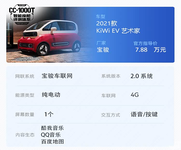 宝骏KiWi EV在去年8月正式上市,时尚摩登的造型给我留下了深刻的印象,仿佛它是从未来走来,完全不像这个时代的产物。6.98万元的起售价比宏光MINI贵了不少,但考虑到KiWi EV犹如“时尚单品”般的定位,这样的价格也是被市场所接受的,这点从它累计收获的20000台订单也足以证明(截止2021 年底)。这次我们测试的是它的“艺术家”版车型,属于高阶版,售价7.88万元。