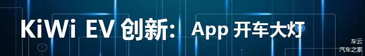 使用手机App开启车辆的一些功能,例如解锁车门、查看车辆信息,类似这种远程操控其实已经非常常见了,KiWi EV又会有哪些创新呢?KiWi EV的时尚定位决定了它的一些特殊的设计,例如前大灯组下方特有的“凹”型造型,就是为了契合年轻人拍照的需要。App开车大灯不但方便车主在昏暗的环境下寻车;远程开启车灯后,还会带来更炫酷的拍照场景,通过车主后期不同的灯光创意,可以拍摄出不同风格的照片,想必这也是KiWi EV提供这项功能的初衷吧。