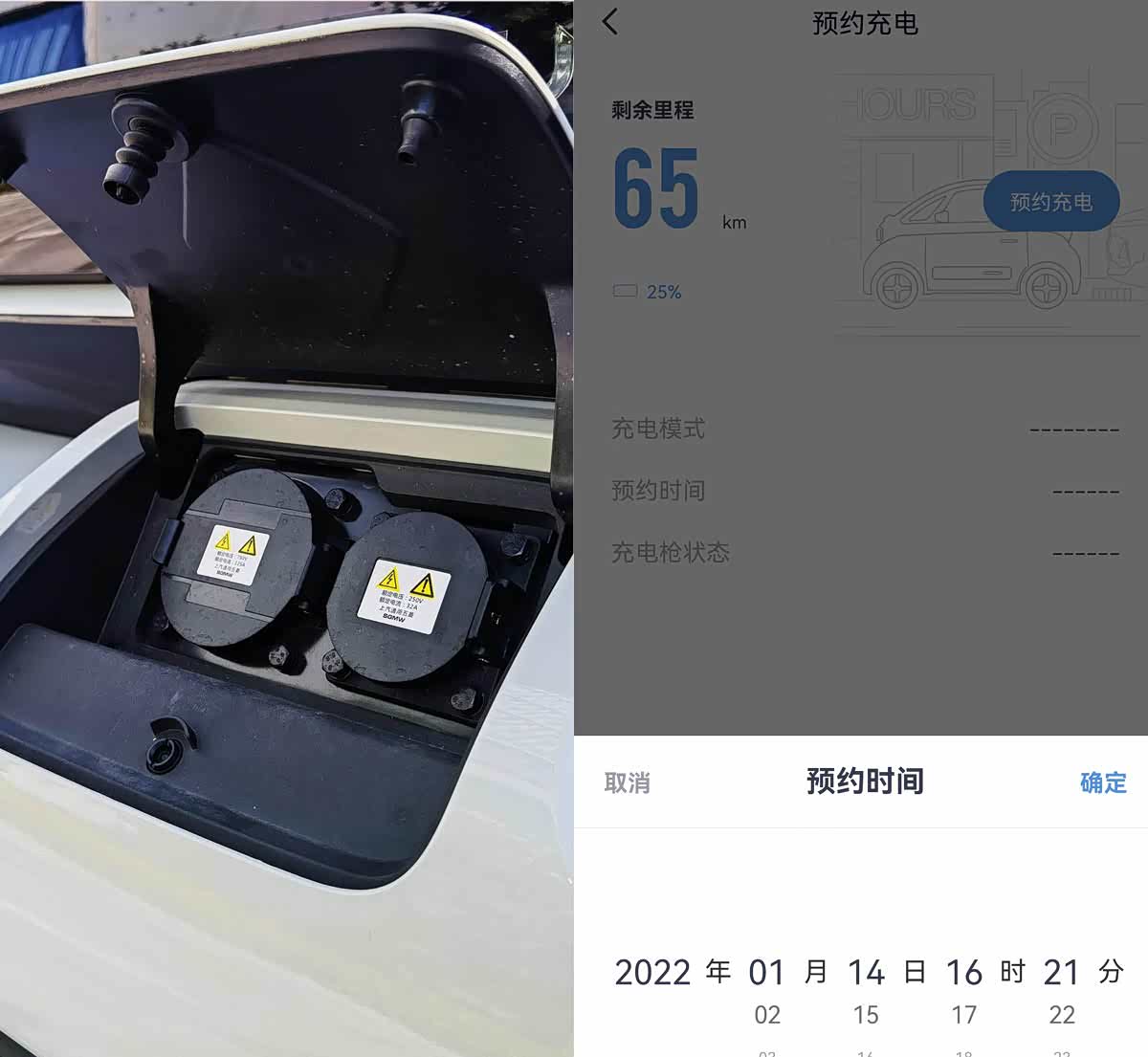 我们最后来说说KiWi EV充电的特点,不同于其他小型车仅支持慢充,KiWi EV还拥有快充接口,在直流快充模式下,电量从 30%充至 80%仅需 1 小时。远程预约充电则可以让用户更自由的选择充电时间,例如在电价低谷是选择充电,使充电费用大大降低;此外,App远程预约充电也可以为用户带来更大的便利性。