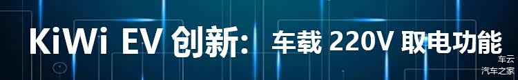 作为一款主打年轻消费者的电动汽车,它需要面对多场景的需求,例如现在越来越流行的户外郊游。周末来到户外,我们可能需要一个电磁炉进行烹调,需要一个投影仪播放电影,或者应急为笔记本电脑进行充电。这时KiWi EV车载220V取电功能就能很好的解决上述问题,通过单独购买的取电枪,KiWi EV便立刻变身一个巨型“充电宝”,完全消除您用电设备没电的顾虑。