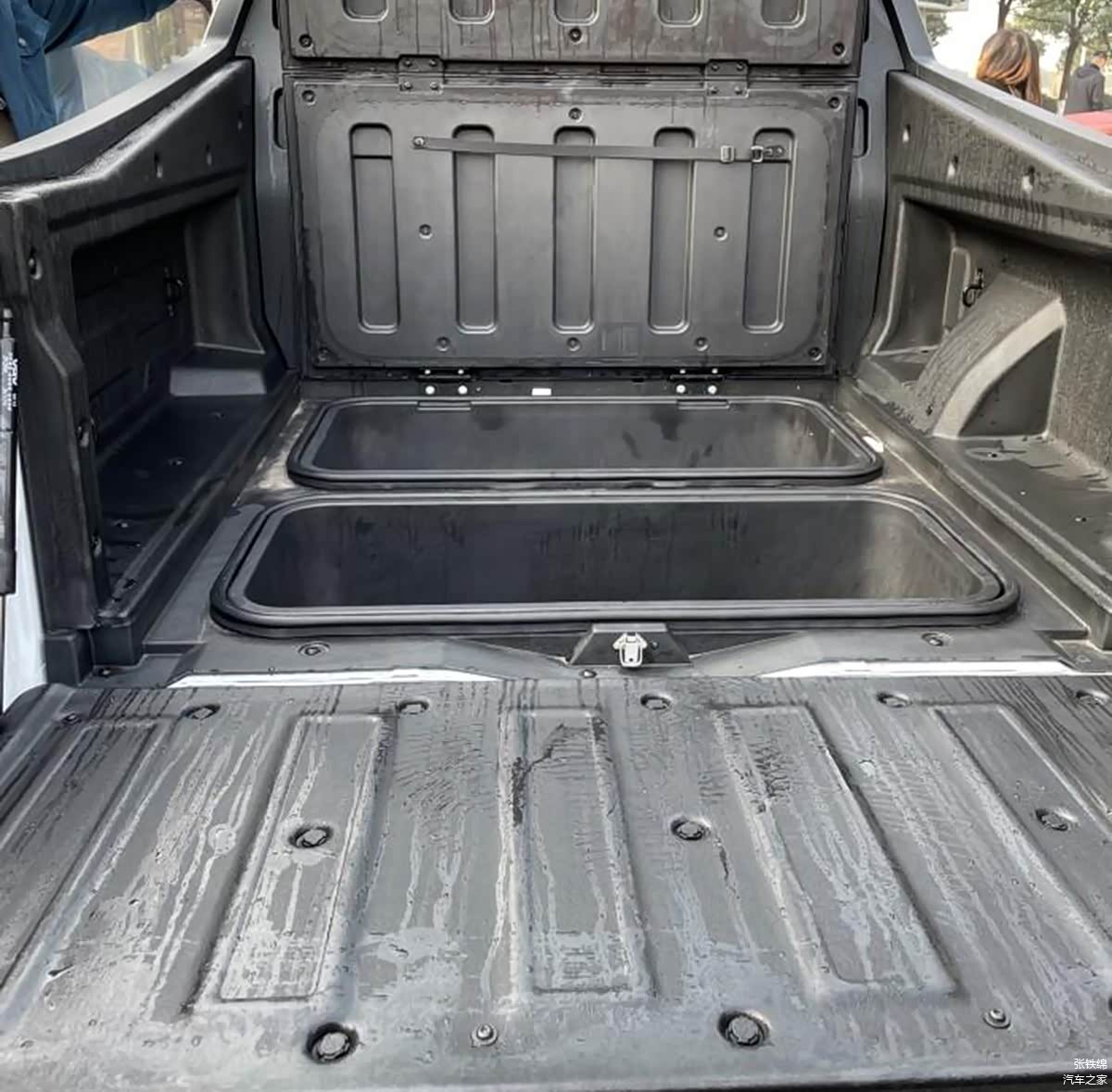 这辆重汽VGV VX7的货箱尺寸为1114x1438x588mm,虽然不是很大,但是有很大的看点,首先就是在平底箱的盖板下部隐藏了两个较大的储物盒,非常实用。