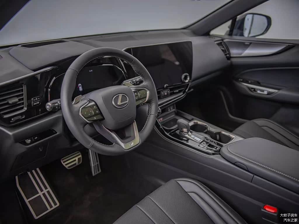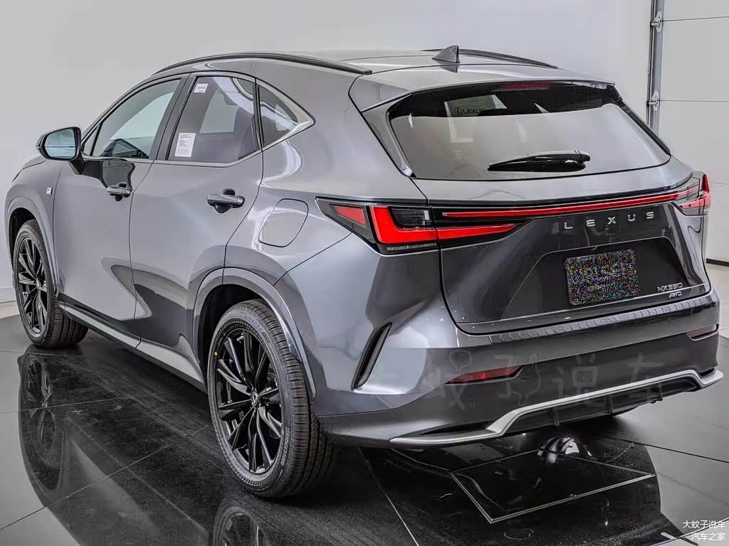 2022款雷克萨斯NX350 AWD海外实车,定位中型SUV。外观采用了雷克萨斯家族式的设计语言,灰色车漆涂装让它看起来非常炫酷,宽大的车头造型给人很大气的感觉,标志性的前纺锤式进气格栅极具辨识度,新车搭载了全新造型的大灯,灯组内部装配有LED日间行车灯,看起来时尚大气,前包围设计运动,两侧犀利的散热开口动感十足。车身侧面,是标准的SUV造型,整体没有用过多的线条去刻画,营造出了非常简洁的平面效果,平滑流畅的车顶线条,富有运动的风格,黑化大尺寸轮毂视觉效果颇为夸张,赋予新车更强的运动氛围。2022款雷克萨斯NX尾部采用了贯穿式尾灯组设计,灯组内部结构精致,在点亮后极具辨识度,后包围装备有小型尾部扩散器,运动化风格十分显著。