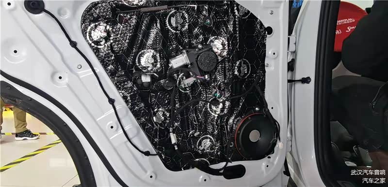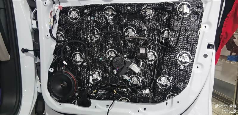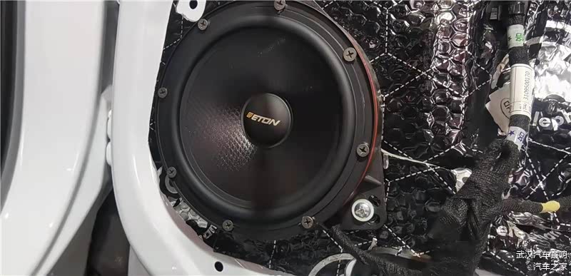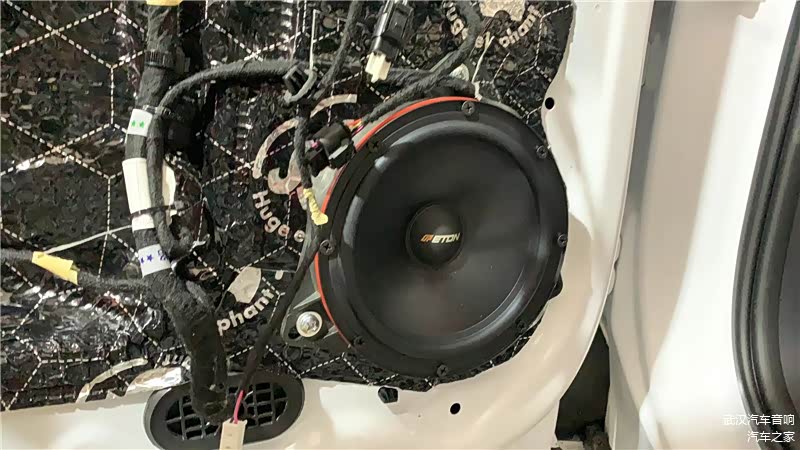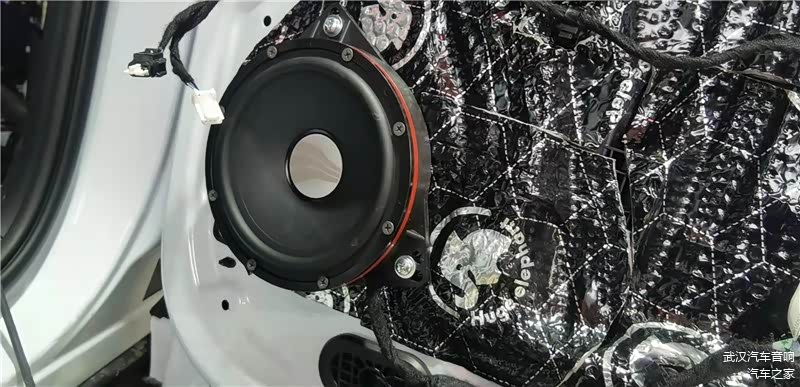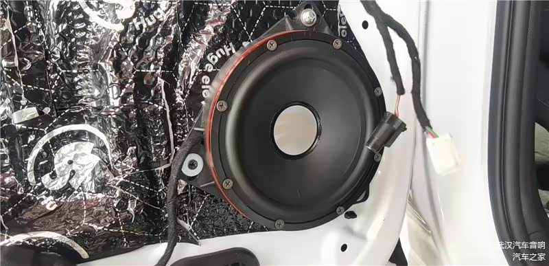 两分频喇叭原车位安装在门板上,门板做好双层巨象环保隔音,为声场喇叭提供一个良好的发声环境。