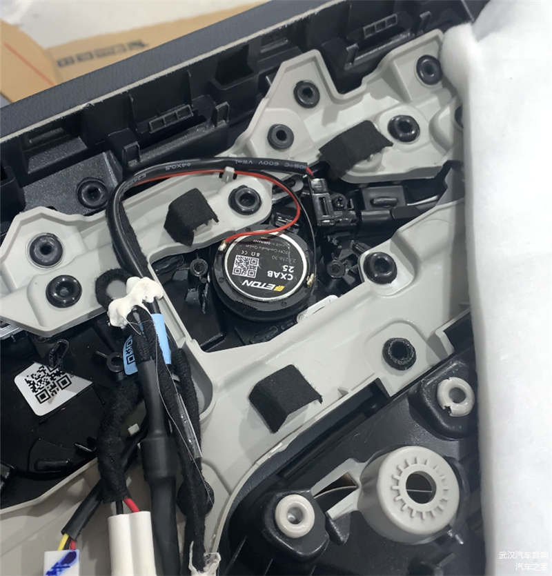 中置喇叭我们原车位升级了一支德国零点的中音喇叭,有了中音的加入,音乐的层次感将更加丰富。并且能将人声提到仪表台上,音乐更具有舞台感。