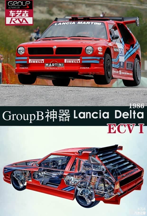 上期给大家介绍的Lancia Delta S4已经是B组别的大杀器了,而今天给大家介绍的这款Lancia Delta ECV I(以下简称ECV)更是Lancia的巅峰造极之作,是蓝旗亚为了应对比B组更高一级的S组精心准备出的完成品。