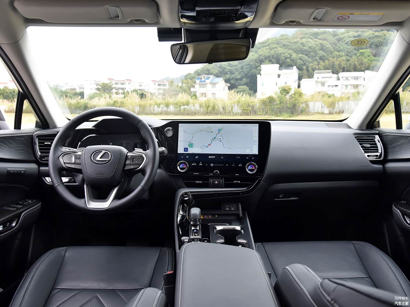 内饰部分,新款雷克萨斯NX全系用料都还不错,只有入门车型座椅为织物款,中配车型为仿皮,高配为真皮,前排座椅支持腰部调节,后排座椅支持靠背调节,使得不够充裕的尺寸来带的小后排有一定的舒适性改善。